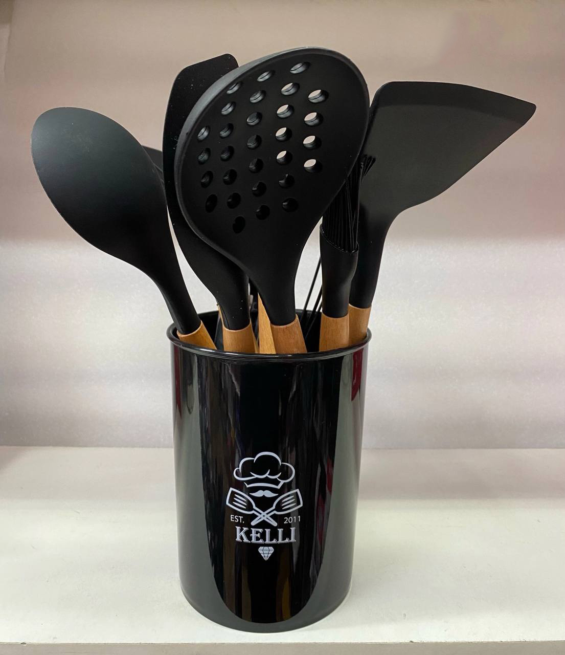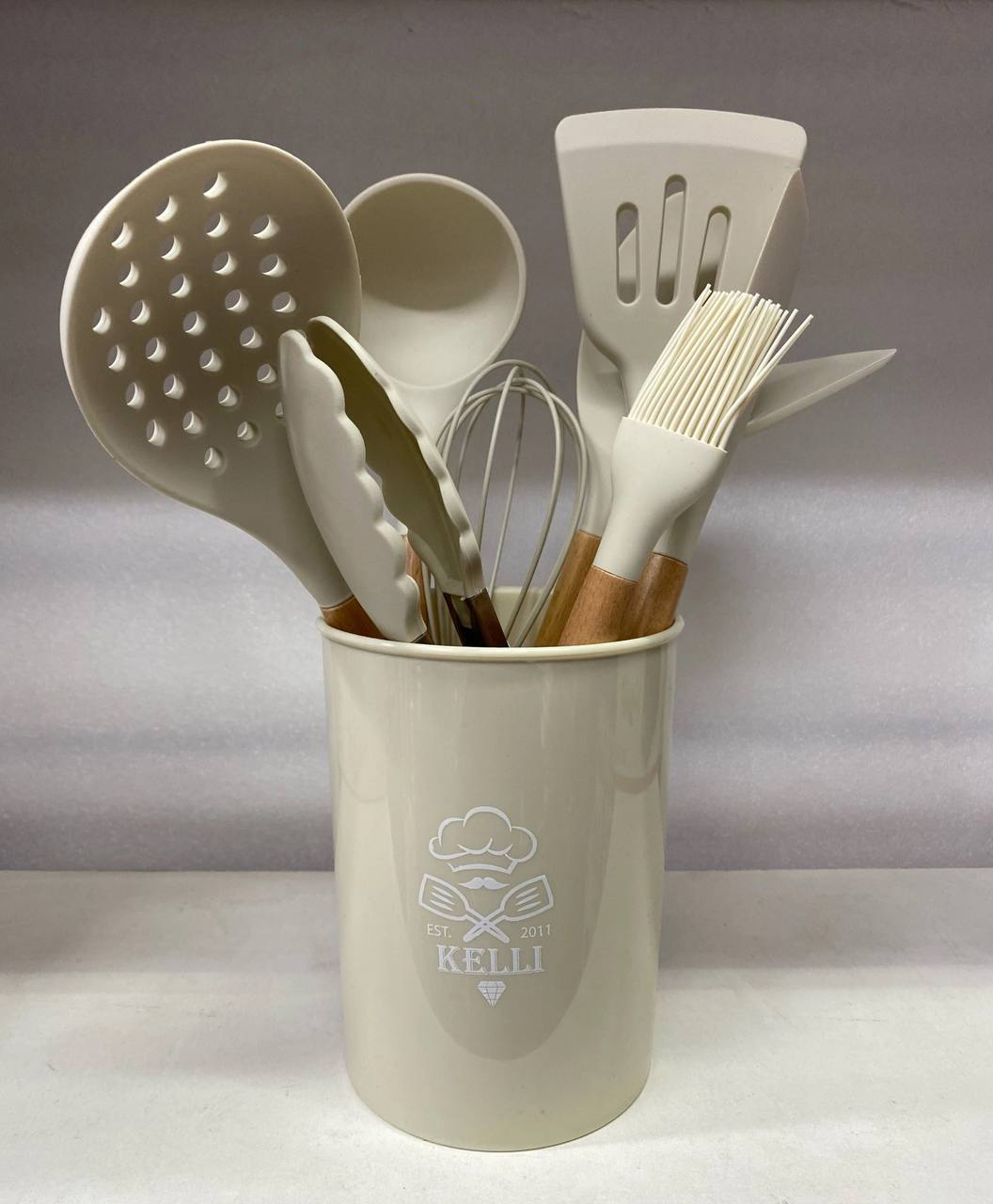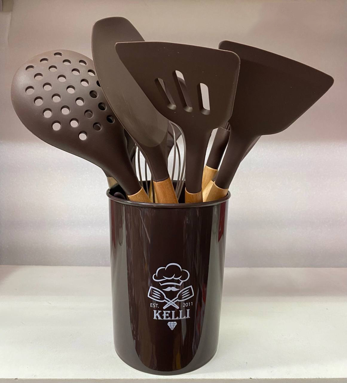 Набор силиконовых кухонных принадлежностей бренда состоит из 11 предметов, включая стакан для хранения. Набор лопаток для кухни изготовлен из экологически чистых материалов - бамбука и пищевого силикона. Пищевой силикон обладает антипригарным покрытием, которое не оставляет царапин и повреждений на поверхности посуды и выдерживает температуру до +230 С. Эта силиконовая посуда для приготовления пищи не гнется, не ржавеет, не впитывает цвета или запахи. На кухонные принадлежности из силикона не налипает пища и их очень легко мыть в проточной воде.