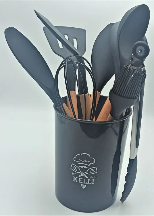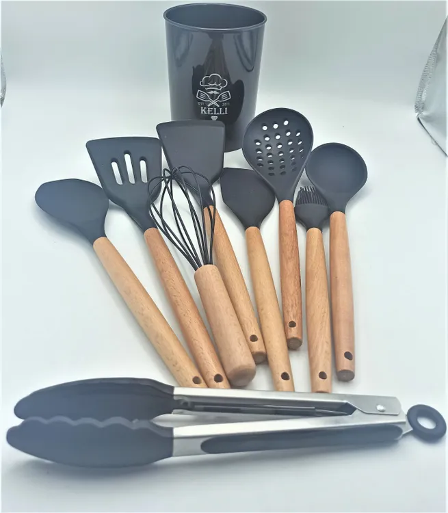 Набор силиконовых кухонных принадлежностей бренда состоит из 11 предметов, включая стакан для хранения. Набор лопаток для кухни изготовлен из экологически чистых материалов - бамбука и пищевого силикона. Пищевой силикон обладает антипригарным покрытием, которое не оставляет царапин и повреждений на поверхности посуды и выдерживает температуру до +230 С. Эта силиконовая посуда для приготовления пищи не гнется, не ржавеет, не впитывает цвета или запахи. На кухонные принадлежности из силикона не налипает пища и их очень легко мыть в проточной воде.